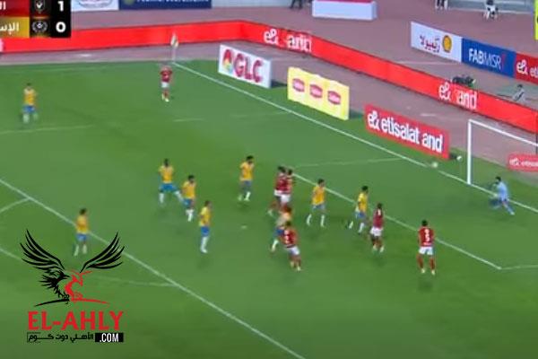 ياسين مرعي يصوب كرة قوية ترتطم بدفاعات الإسماعيلي وتغير اتجاهها إلي داخل الشباك