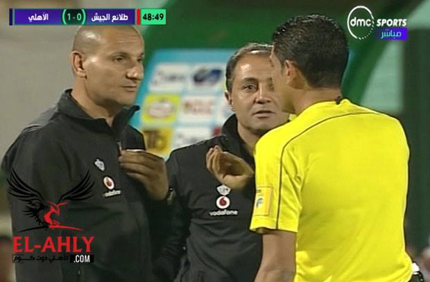 شهدت مباراة الأهلي وطلائع الجيش قيام حكم المباراة ابراهيم نور الدين بالحديث مع طارق سليمان مدرب حراس المرمى من أجل ازالة "السماعة" التي يتواصل من خلالها مع المدير الفني حسام البدري. حسام البدري المدير الفني للأهلي تم ايقافه مباراتين وذلك بعد قيامه بالنظر بطريقة اعتبرها حكم مباراة الانتاج الحربي محمود عاشور "مهينة". وقام ابراهيم نور الدين بطلب طارق سليمان من اجل ازالة "السماعة" حتى لا يحدث أي تواصل بين البدري الذي يتابع المباراة من المقصورة والجهازالفني. كان الشوط الأول من المباراة قد انتهى بتقدم الأهلي بهدف نظيف سجله عبد الله السعيد من ركلة جزاء في الدقيقة 23 بعد عرقلة وليد سليمان داخل المنطقة.