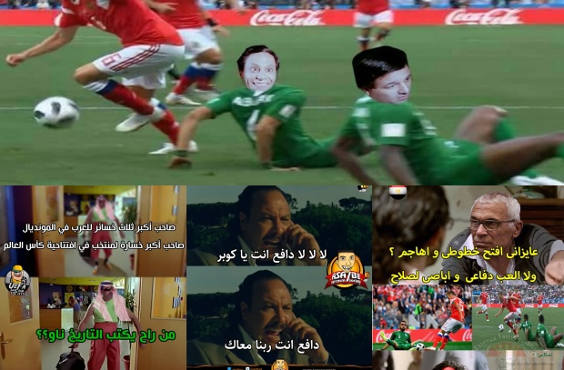تلقى المنتخب السعودي هزيمة كبيرة عندما واجه منتخب روسيا في المباراة الافتتاحية لكأس العالم 2018، وخسر الأخضر بخماسية نظيفة. وقابلت الجماهير العربية الهزيمة الثقيلة التي تلقاها المنتخب السعودي بكوميكسات مضحكة عبر صفحات التواصل الاجتماعي. وجاءت الكوميكس متنوعة حيث كان منها من طالب هيكتور كوبر المدير الفني للمنتخب المصري باللجوء إلى الدفاع في مواجهة أوروجواي، وكانت بعضها عن تصريحات فهد المولد قبل المونديال. ولم تغفل صفحات التواصل الاجتماعي كرة الهدف الثاني للمنتخب الروسي عندما راوغ دينيس تشيريشيف أسامة الهوساوي ومحمد البريك بمهارة رائعة. ويقدم El-Ahly.com أبرز الكوميكس التي نشرتها بعض الصفحات على مواقع التواصل الاجتماعي بعد هزيمة المنتخب السعودي أمام روسيا.