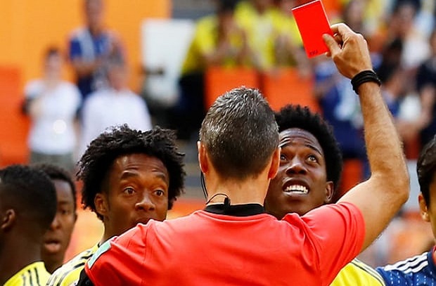 بعد طرد مدافع كولومبيا في الدقيقة الثالثة .. تعرف على أسرع البطاقات الحمراء في تاريخ المونديال .