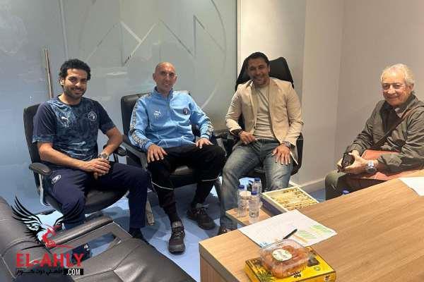 وضم وفد المنتخب كل من الكابتن حلمي طولان المدير الفني، والكابتن أحمد حسن مدير المنتخب، وأيمن حافظ المدير الإداري. جرى اللقاء بحضور المهندس ممدوح عيد الرئيس التنفيذي لنادي بيراميدز، والكابتن هاني سعيد المدير الرياضي، والمستر بروشيتش المدير الفني للفريق.