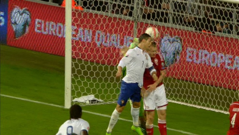 أحرز كريستيانو رونالدو هدف الفوز لمنتخب بلاده البرتغال أمام الدنمارك في صتفيات اوروبا في الدقيقة 95 من زمن اللقاء الذي أقيم في الدنمارك. وارتقى رونالدو فوق دفاع منتخب الدنمارك ليحرز هدف الفوز الغالي لمنتخب بلاده من عرضية مميزة في الدقيقة 95. بهذا الفوز رفع منتخب البرتغال رصيده إلى ثلاث نقاط محتلا المركز الثالث بعد ألبانيا والدانمارك صاحبا المركز الأول برصيد 4 نقاط. يذكر أن مباراة ألبانيا وصربيا قد تم ألغائها بسبب دخول الجماهير أرض الملعب وحدوث اشتباكات بين اللاعبين.