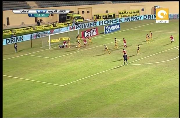 أضاع إيفونا كرة خطيرة للأهلي وهو داخل منطقة الـ 6 ياردات ليحرم الأهلي من التقدم على الإنتاج الحربي. صالح جمعة حول كرة ركنية ومررها عماد متعب لماليك إيفونا الذي سددها برأسه ولكنها إصطدمت بمدافع الإنتاج الحربي. وبعد مرور 80 دقيقة ما زال التعادل السلبي هو المسيطر على نتيجة المباراة التي تقام ضمن منافسات الجولة الثانية عشر لمسابقة الدوري. كان إيفونا قد أهدر أول فرصة للأهلي في المباراة عن طريق تسديدة مرت بعيدة عن مرمى أمير عبد الحميد في الشوط الثاني. طالع أيضاً : متابعة دقيقة بدقيقة لمباراة الأهلي والإنتاج القائم يحرم شهاب أحمد من تسجيل الهدف الأول إيفونا يهدر أول فرصة للأهلي شوط أول سلبي بين الأهلي والإنتاج الحربي