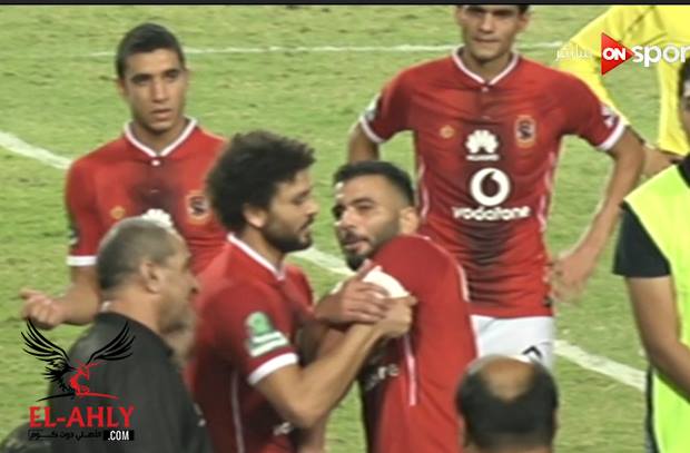 شهدت كواليس مباراة الأهلي وإنبي في الجولة الـ32 من بطولة الدوري العام عقب إطلاق صافرة نهاية اللقاء لقطة رائعة بين قائدي النادي الأهلي حسام غالي وعماد متعب في ارض ملعب بتروسبورت. وعقب نهاية المباراة حرص حسام غالي قائد خط وسط النادي الأهلي في منح زميله عماد متعب شارة القيادة من أجل رفع درع الدوري بعد الفوز به رسمياً قبل نهاية المسابقة بأربع جولات. واستمر الحوار بين غالي ومتعب في لقطة شبيهة لما قام به عماد متعب مع لاعب خط الوسط في كاس السوبر المصري السابق ومنح غالي شارة القيادة لرفع الكاس وقتها. واستمرت محاولات حسام غالي لمنح زميله عماد متعب شارة القيادة ولكن إنتهى الأمر بحمل حسام غالي لشارة القيادة. لقطة الموسم: روح الأهلي تتجلى بين غالي ومتعب بسبب شارة الكابتن عقب لقاء إنبي pic.twitter.com/xD6VPb5OFv— موقع جماهير الأهلي (@ElAhlycom) June 24, 2017