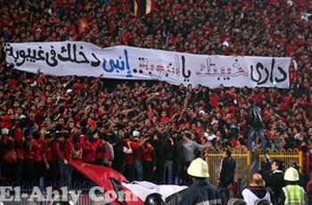 قامت مجموعات التراس اهلاوي برفع لافتة "أهلاوى ثورجى " تضامنا مع ارواح شهداء موقعة يوم جمعة الغضب خلال مباراة اليوم امام فريق المقاولون العرب ضمن الجولة السادسة عشر .