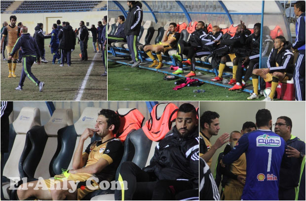 إنهار لاعبو الإنتاج الحربي عقب هدف متعب الصاعق في الدقيقة الأخيرة من اللقاء ، وظهر على اللاعبين ضياع نقطة التعادل من اللقاء الذي أقيم على ملعب بتروسبورت في منافسات الجولة 12 بالدوري المصري. ورصدت عدسة El-Ahly.com لحظات إنهيار لاعبي الإنتاج الحربي وإعتراضهم على الحكم محمد معروف بعد إشارته بإحتساب 6 دقائق وقت بدل ضائع أحرز خلالها متعب هدفه القاتل. شارك جمهور الأهلي في تقييم لاعبي النادي الأهلي امام الانتاج الحربي واعترض الجهاز الفني كثيراً بعد هدف متعب ، ونشبت مشاجرة قوية بين اللاعبين سرعان ما انتهت بعد تدخل اللاعبين للتهدئة. وقام شريف إكرامي حارس الأهلي بالذهاب لغرفة ملابس الإنتاج لتهدئة الأجواء التي إشتعلت في نهاية اللقاء. الصور بعدسة – محمد عزت طالع أيضاً شاهد 55 لقطة توضح "خناقة" لاعبي الأهلي والإنتاج ولم تنقلها عدسات التليفزيون وائل رياض: لم اعترض سوى على الحكم ولم اشتبك مع أي فرد من الأهلي شاهد مشاجرة ما بعد المباراة من كاميرا خاصة مختلفة عن كاميرا التليفزيون
