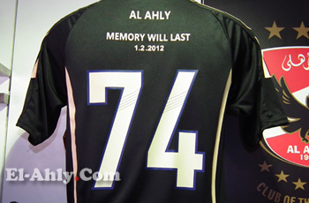 وكانت ادارة الاهلى قد اعلنت عن اصدار تيشرت اسود عليه رقم 74 فور الاعلان عن تيشرت الموسم الجديد من تصميم شركة الملابس العالمية اديداس الا ان هذا التيشرت الذى سيخلد الشهداء كان للبيع فقط فى محلات الاهلى ستور ولا يسمح للفريق بالمشاركة به فى المباريات