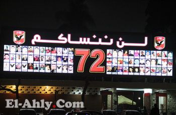 انتهى النادي الأهلي من تركيب لوحة مضيئة يوجد بها 72 صورة لشهداء بورسعيد لتخليد ذكراهم على مر العصور بعد أن اغتالتهم يد الغدر في ملعب بورسعيد ،حيث قرر مجلس إدارة الأهلي الاستغناء عن اللوحة الموجودة على البوابة واستبدالها بأخرى إليكترونية تضئ صور الشهداء. وكان محمود الخطيب قد تقدم بطلب لمجلس إدارة الأهلي بضرورة أن يقوم النادي بتركيب اللوحة المضاءة وهو ما وافق عليه المجلس وتبرع كل منهم بـ15 ألف جنيه وتم الاستعانة بشركة خاصة قامت بتركيب اللوحة المضاءة. يذكر أن اسر الشهداء طالبت مجلس الإدارة بضرورة تخليد ذكرى شهداء النادي وطلبوا أن يكون هناك "تمثال" رمزي في النادي وهو ما سيتم خلال الفترة المقبلة بجانب طلبهم بضرورة ظهور صور ذويهم في قناة النادي وهو ما تم بالفعل. وسيقوم النادي في ذكرى مذبحة بورسعيد بتأبين الشهداء بحضور 4 من أسرة كل شهيد وأن يتناولوا الغذاء مع مجلس إدارة النادي وكذلك فريق الكرة والجهاز الفني على أن يكون هناك حفل تأبين في الصالة المغطاة. شاهد صور الشهداء على بوابة النادي الأهلي الصور بعدسة/ محمد عزت